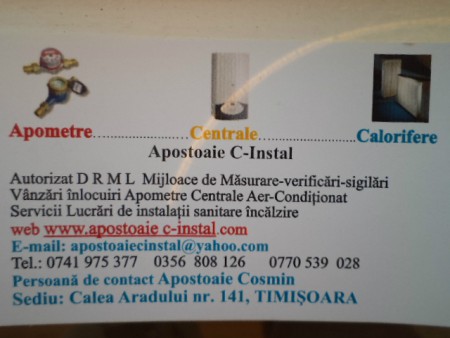 Instalatori Autorizati Apometre Timisoara ,Sigilari Apometre Timisoara ,Apometre Timisoara , Verificari Apometre Timisoara ,